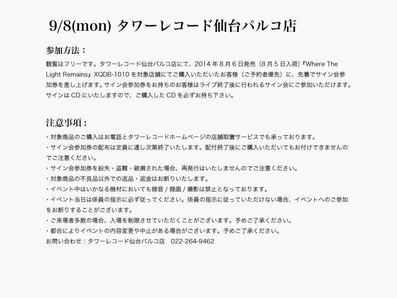 自分たち HAWAIIAN6 は今現在レコ発ツアーの真っ最中ですが、ここで東北ツアーファイナルについて皆さんにお知らせがあります。