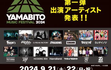 山人音楽祭 2024 9/21 (土) / 9/21 (日) 日本トーターグリーンドーム前橋 第一弾出演アーティスト発表 act : Age Factory / 佐藤タイジ / G-FREAK FACTORY / SHA…