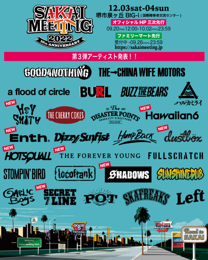 a flood of circle / BURL / BUZZ THE BEARS / Dizzy Sunfist / dustbox / ENTH / FULLSCRATCH / GARLICBOYS / HEY-SMITH / HOTSQUALL / Hump Back / Left / locofrank / POT / SECRET 7 LINE / SHADOWS / SKA FREAKS / STOMPIN’ BIRD / SUNSHINE DUB /