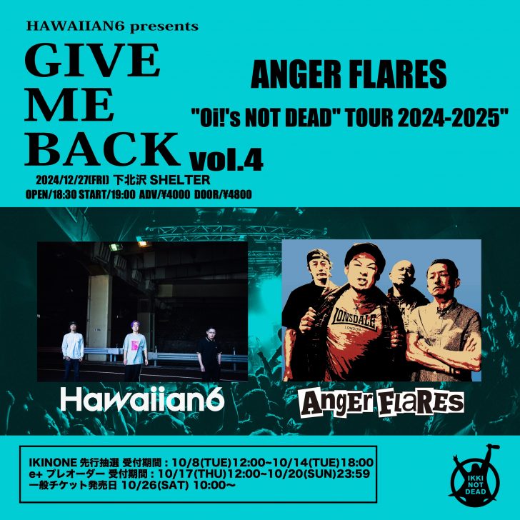 HAWAIIAN6 presents GIVE ME BACK vol.4 × ANGER FLARES Oi!’s NOT DEAD TOUR 2024-2025
