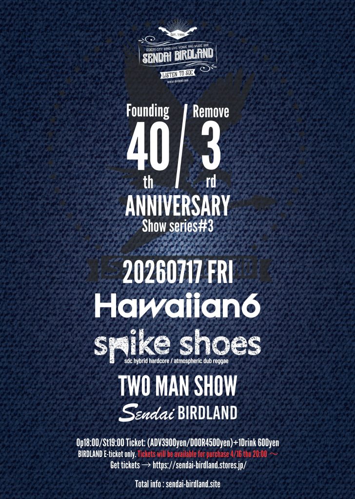”SENDAI-BIRDLAND Founding 40th / Remove 3rd ANNIVERSARY show series#3
